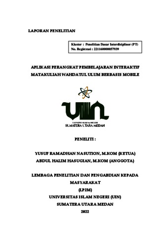 Nasution, Yusuf Ramadhan and Hasugian, Abdul Halim (2022) Aplikasi Perangkat Pembelajaran Interaktif Mata Kuliah Wahdatul Ulum Berbasis Mobile. Lembaga Penelitian Dan Pengabdian Kepada Masyarakat (LPPM) Universitas Islam Negeri Sumatera Utara.