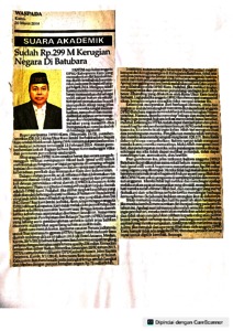 Efendi, Erwan (2014) Sudah Rp.299 M Kerugian Negara Di Batubara. Waspada. ISSN 0215-3017