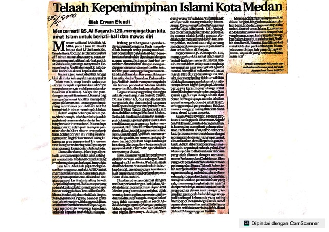 Efendi, Erwan (2010) Telaah Kepemimpinan Islam Di Kota Medan. Waspada. ISSN 0215-3017