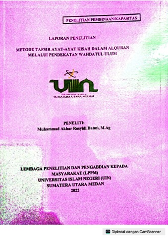 Datmi, Muhammad Akbar Rosyidi (2022) Metode Tafsir Ayat-Ayat Kisah Dalam Al-Quran Melalui Pendekatan Wahdatul Ulum. Lembaga Penelitian Dan Pengabdian Kepada Masyarakat (LPPM) Universitas Islam Negeri Sumatera Utara.