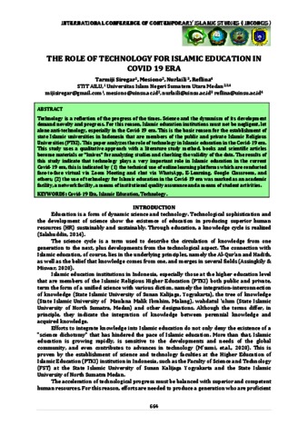 The Role Of Technology For Islamic Education In Covid 19 Era