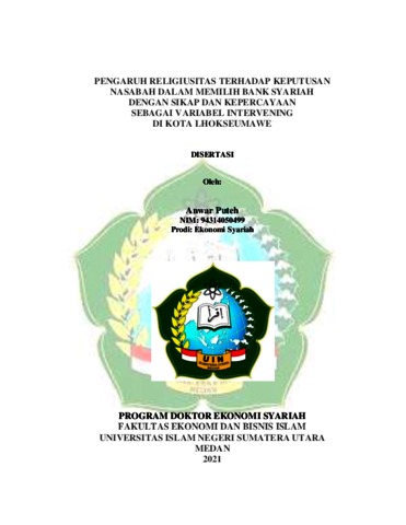 Puteh, Anwar (2021) Pengaruh Religiusitas Terhadap Keputusan Nasabah Dalam Memilih Bank Syariah Dengan Sikap Dan Kepercayaan Sebagai Variabel Intervening Di Kota Lhokseumawe. Doctoral thesis, Universitas Islam Negeri Sumatera Utara.