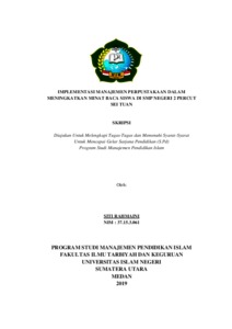Rahmaini, Siti (2019) Implementasi manajemen perpustakaan dalam meningkatkan minat baca siswa di SMP Negeri 2 Percut Sei Tuan. Skripsi thesis, Universitas Islam Negeri Sumatera Utara Medan.