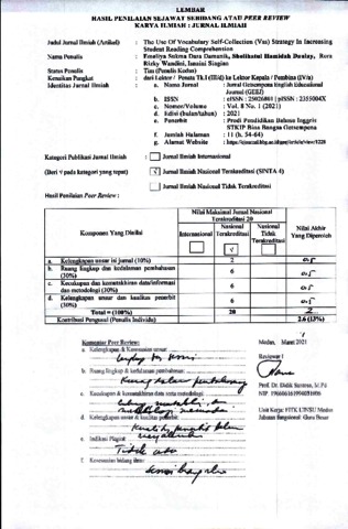 5. PEER REVIEW JURNAL The Use Of Vocabulary Self-Collection (Vss) Strategy In Increasing Student Reading Comprehension.pdf