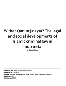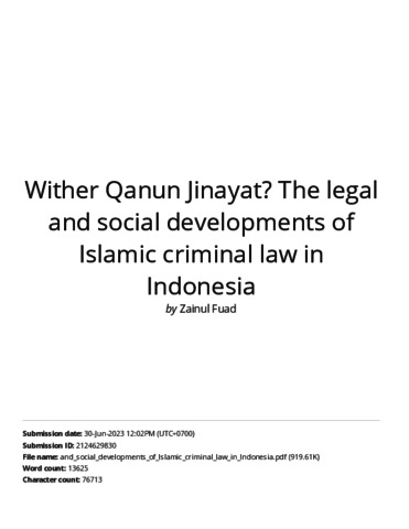 Bukti Turnitin Wither Qanun Jinayat The legal and social developments of Islamic criminal law in Indonesia.pdf Download (4MB) | Preview |