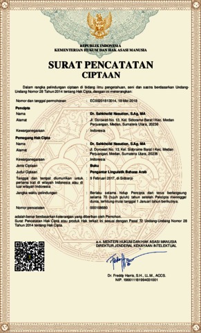 Kementerian Hukum dan HAM (2018) Haki Pengantar Linguistik Bahasa Arab. EC00201813014.