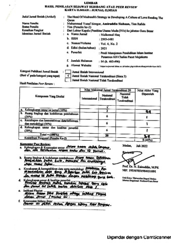 Siregar, Muhammad Yusuf and Siahaan, Amiruddin and Rafida, Tien (2021) Peer Review The Head Of Madrasah's Strategy In Developing A Culture Of Love Reading The Quran. Institut Pesantren KH Chalim Pacet Mojokerto.