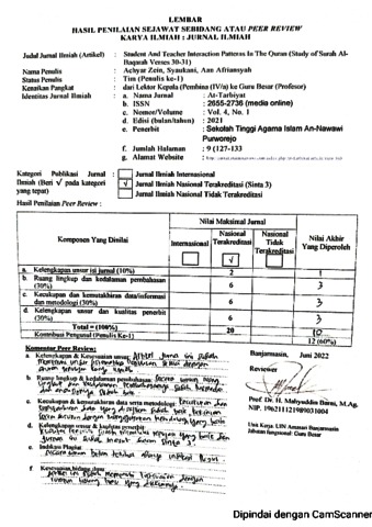 Zein, Achyar and Syaukani, Syaukani and Afriansyah, Aan (2021) Peer Review Student And Teacher Interaction Patterns in The Quran (Study Of Surah Al-Baqarah Verses 30-31). STAI An-Nawawi Purworejo.