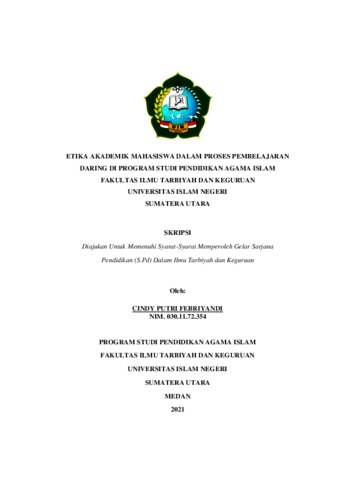 Etika Akademik Mahasiswa Dalam Proses Pembelajaran Daring Di Program Studi Pendidikan Agama Islam Fakultas Ilmu Tarbiyah dan Keguruan Universitas Islam Negeri Sumatera Utara
