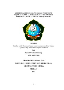 Harahap, Rapeah Wardani (2021) Kedudukan Bisnis Online Dalam Perspektif Alquran Surah Al-Baqarah Ayat 275 (Analisis Terhadap Tafsir Sya’rawi Dan Qurthubi). Skripsi thesis, Universitas Islam Negeri Sumatera Utara.
