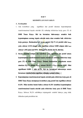 Kontribusi Kepemimpinan Transformasional Kepala Sekolah Terhadap Efektivitas Kerja Guru Di SMK Tunas Karya