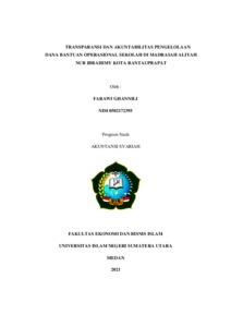 Ghannili, Farawi (2021) Transparansi dan Akuntabilitas Pengelolaan Keuangan Dana Bantuan Operasional Sekolah Di Madrasah Aliyah Nur Ibrahimy Rantauprapat. Skripsi thesis, Universitas Islam Negeri Sumatera Utara.