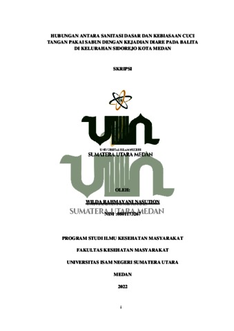 Nasution, Wilda Rahmayani (2022) Hubungan Antara Sanitasi Dasar Dan Kebiasaan Cuci Tangan Pakai Sabun Dengan Kejadian Diare Pada Balita Di Kelurahan Sidorejo Kota Medan. Skripsi thesis, Universitas Islam Negeri Sumatera Utara.