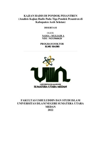 A, Muliadi (2022) Kajian Hadis Di Pondok Pesantren (Analisis Kajian Hadis Pada Tiga Pondok Pesantren Di Kabupaten Aceh Selatan). Doctoral thesis, Universitas Islam Negeri Sumatera Utara.