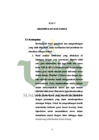 Pengembangan Media Pembelajaran Matematika Berbentuk Komik Berbasis Game Based Learning Pada Materi Bangun Datar di Madrasah Tsanawiyah Al-Munawwarah Binjai
