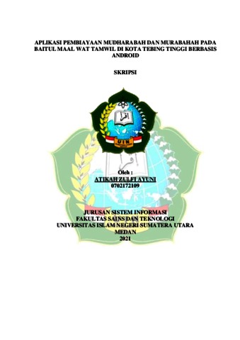 Ayuni, Atikah Zulfi (2021) APLIKASI PEMBIAYAAN MUDHARABAH DAN MURABAHAH PADA BAITUL MAAL WAT TAMWIL DI KOTA TEBING TINGGI BERBASIS ANDROID. Skripsi thesis, Universitas Islam Negeri Sumatera Utara.