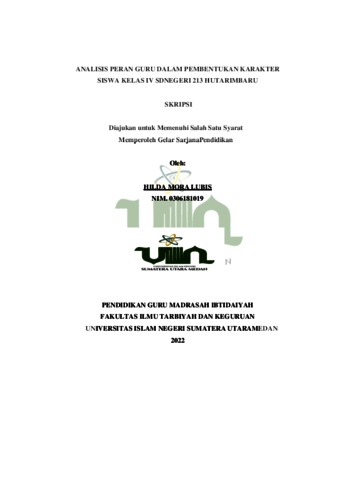 Lubis, Hilda Mora (2022) Peran Guru Dalam Pembentukan Karakter Siswa Kelas IV SD Negeri 213 Hutarimbaru. Skripsi thesis, Universitas Islam Negeri Sumatera Utara.