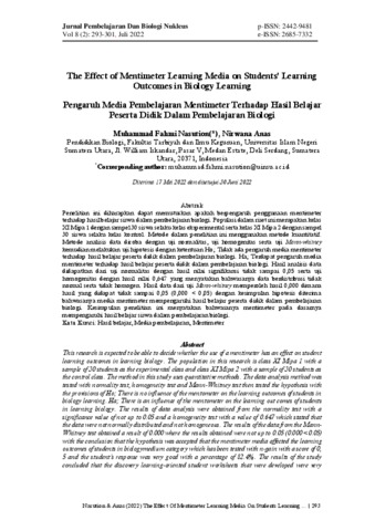 Nasution, Muhammad Fahmi and Anas, Nirwana (2022) Pengaruh Media Pembelajaran Mentimeter Terhadap Hasil Belajar Peserta Didik Dalam Pembelajaran Biologi. Jurnal Pembelajaran Dan Biologi Nukleus, 8 (2). pp. 293-301. ISSN p-ISSN: 2442-9481 e-ISSN: 2685-7332