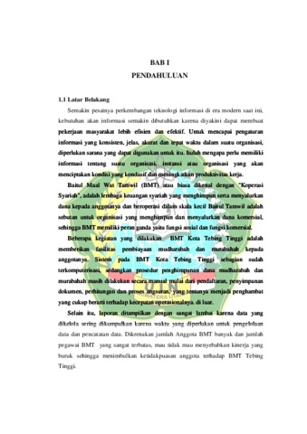 Masyarakat meminati pembiayaan dalam pengembangan usaha mereka, namun tidak memiliki modal. Sedangkan pembiayaan murabahah merupakan produk yang memungkinkan terjadinya jual beli antara BMT Tebing Tinggi terhadap anggotanya. BMT Tebing Tinggi membeli atau memesan atas permintaan anggota dan kemudian menjualnya kembali kepada anggota dengan harga beli ditambah keuntungan yang disepakati BMT Tebing Tinggi. Pengolahan data pembiayaan produk masih berjalan secara manual, sehingga pelayanannya terhambat, sehingga anggota BMT harus menunggu lama. Berdasarkan permasalahan tersebut, maka dibuatlah aplikasi keuangan mudharabah dan murabahah berbasis android. Selama pembuatan program ini, penggunaan metode kualitatif dipakai dalam penganalisisan data, menggunakan alat UML, Kodular sebagai wadah pembuatan aplikasi, Java sebagai bahasa pemrograman serta basis datanya MySQL. Program keuangan ini menciptakan alur kerja dalam pengefektifan kegiatan yang berlangsung di BMT Tebing Tinggi. Dalam sistem ini terdapat fitur penyimpanan dana, anggota dapat mendaftar, anggota bisa melakukan ajuan pembiayaan dan membayar cicilan. Selain itu juga terdapat adanya olah data, seperti data simpanan, data anggota, data biaya dan cicilan.