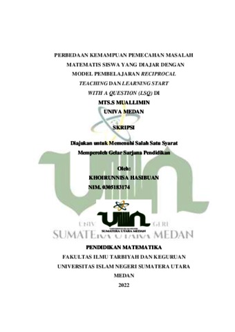 Hasibuan, Khoirunnisa (2022) Perbedaan Kemampuan Pemecahan Masalah Matematis Siswa Yang Diajar Dengan Model Pembelajaran Reciprocal Teaching Dan Learning Start With A Question (LSQ) Di MTs.S Muallimmin Univa Medan. Skripsi thesis, Universitas Islam Negeri Sumatera Utara.