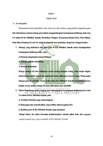 Kawakib, Lutfia Rahmi (2021) Strategi Guru Dalam Meningkatkan Kemampuan Berhitung Anak Usia 5-6 Tahun Di RA Miftahul Jannah, Kelurahan Nangka, Kecamatan Binjai Utara, Kota Binjai, Pada Masa Pandemi Covid-19. Skripsi thesis, Universitas Islam Negeri Sumatera Utara.