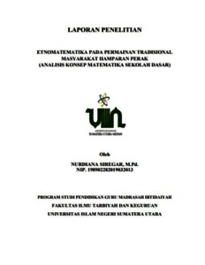 Siregar, Nurdiana Etnomatematika pada Permainan Tradisional Masyarakat Hamparan Perak (Analisis Konsep Matematika Sekolah Dasar). Program Studi Pendidikan Guru Madrasah Ibtidaiyah Fakultas Tarbiyah dan Keguruan UIN Sumatera Utara, Medan. (Submitted)