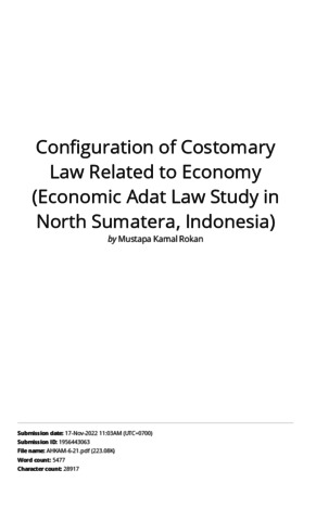 Rokan, Mustapa Kamal and Kamarusdiana, Kamarusdiana TURNITIN Configuration of Costomary Law Related to Economy (Economic Adat Law Study in North Sumatera, Indonesia). 0.