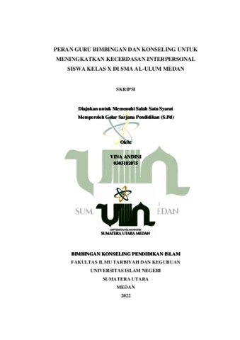 Andini, Vina (2022) Peran Guru Bimbingan dan Konseling untuk Meningkatkan Kecerdasan Interpersonal Siswa Kelas X di SMA Al-Ulum Medan. Skripsi thesis, Universitas Islam Negeri Sumatera Utara.