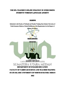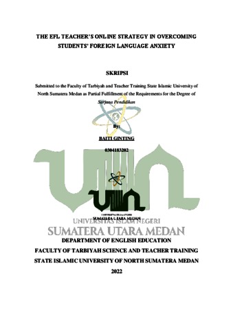 Ginting, Baiti (2022) THE EFL TEACHER’S ONLINE STRATEGY IN OVERCOMING STUDENTS’ FOREIGN LANGUAGE ANXIETY. Skripsi thesis, Universitas Islam Negeri Sumatera Utara.