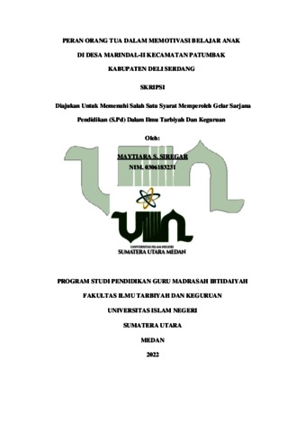 Siregar, Maytiar S (2022) Peran Orang tua Dalam Memotivasi Belajar Anak dengan Sistem Daring Desa Marendal II Kecamatan Patumbak. Skripsi thesis, Universitas Islam Negeri Sumatera Utara.