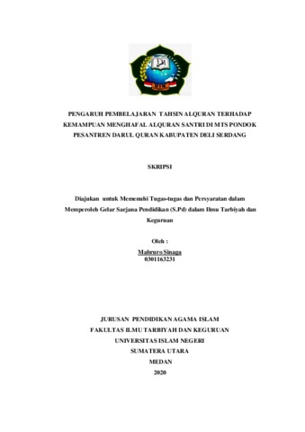 Sinaga, Mabruro (2020) Pengaruh Pembelajaran Tahsin Alquran Terhadap Kemampuan Menghafal Alquran Santri Di MTs Pondok Pesantren Darul Quran Kabupaten Deli Serdang. Skripsi thesis, Universitas Islam Negeri Sumatera Utara.