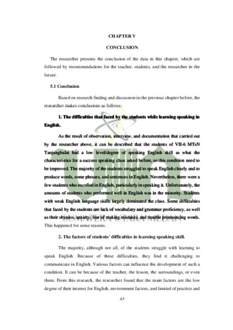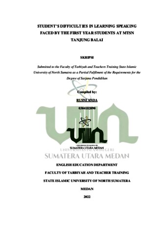 Anda, Rusni (2022) Student’s Difficulties in Learning Speaking Faced by The First Year Students at MTsN Tanjung Balai. Skripsi thesis, Universitas Islam Negeri Sumatera Utara.