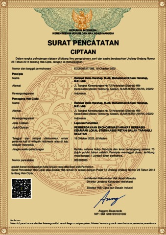 Harahap, Rahmat Daim and Harahap, Muhammad Ikhsan (2022) HAKI Pemberdayaan Ekonomi Masyarakat Berbasis Kearifan Lokal Studi Kasus Petani Salak Tapanuli Selatan. Universitas Islam Negeri Sumatera Utara.