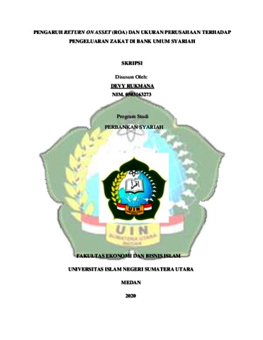 Rukmana, Devy (2020) Pengaruh Return On Asset (ROA) dan Ukuran Perusahaan terhadap Pengeluaran Zakat di Bank Umum Syariah. Skripsi thesis, Universitas Islam Negeri Sumatera Utara.