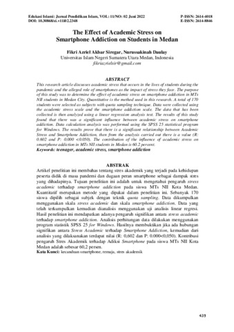 Siregar, Fikri Azriel Akbar and Daulay, Nurussakinah (2022) The Effect of Academic Stress on Smartphone Addiction on Students in Medan. Edukasi Islami: Jurnal Pendidikan Islam, 11 (2). ISSN 2614-8846