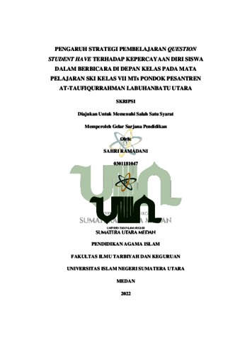 Ramadani, Sahri (2022) Pengaruh Strategi Pembelajaran Question Student Have Terhadap Kepercayaan Diri Siswa Dalam Berbicara Di Depan Kelas Pada Mata Pelajaran SKI Kelas VII MTs Pondok Pesantren At-Taufiqurrahman Labuhanbatu Utara. Skripsi thesis, Universitas Islam Negeri Sumatera Utara.