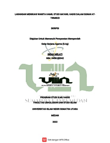 Melati, Indah (2022) Larangan Menikahi Wanita Hamil Studi Ma'anil Hadis Dalam Sunan AT-Tirmidzi. Skripsi thesis, Universitas Islam Negeri Sumatera Utara.