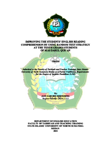 Sihombing, Jati Saruris (2022) Improving the Students’ English Reading Comprehension by Using Random Text Strategy at the Tenth Grade Students of MAS Darul Qur’an. Skripsi thesis, Universitas Islam Negeri Sumatera Utara.