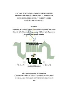 Siregar, Sri Mahyuni (2022) Factors of Students Learning Weaknesses in Speaking English in Grade 2 MTs Al-Hamidiyah Sionggoton Simangambat District North Padang Lawas Regency. Skripsi thesis, Universitas Islam Negeri Sumatera Utara.