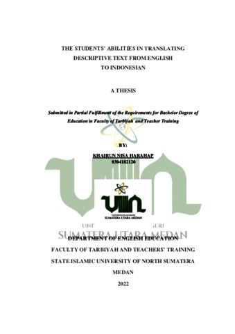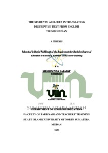 Harahap, Khairun Nisa (2022) The Students’ Abilities In Translating Descriptive Text From English To Indonesian. Skripsi thesis, Universitas Islam Negeri Sumatera Utara.