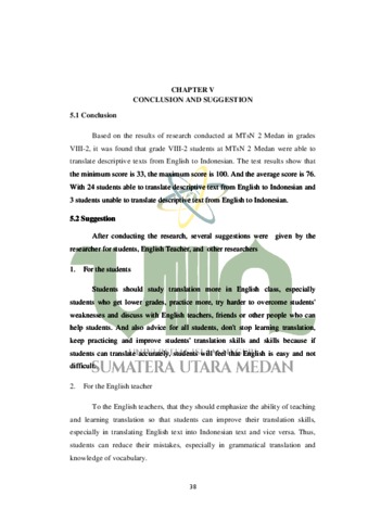 The purpose of this research is to describe the students’ abilities in translating text from English to Indonesian. The research is designed as a quantitative descriptive method. The population of this research is 8th grade students of MTsN 2 Medan in 2021/2022 academic year. It consisted of 1 class that is VIII-2. This research used purposive sampling technique in deciding the sample. The samples were 27 students. To collect data the researcher gave a test to the students. The students were asked to translate descriptive text from English to Indonesian. The test result show that the minimum score is 33, the maximum score is 100. The mean score is 76. Based on the test results, it was found that 8 th grade students of MTsN 2 Medan especially VIII-2 were able to translate decriptive text from English to Indonesian.