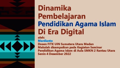 Mardianto, Mardianto (2022) Dinamika Pembelajaran Pendidikan Agama Islam Di Era Digital. Fakultas Ilmu Tarbiyah Dan Keguruan UIN Sumatera Utara. (Submitted)