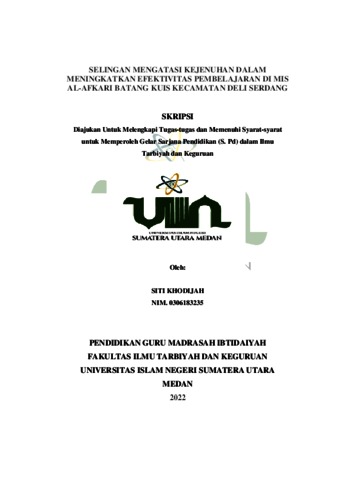 Khodijah, Siti (2022) Selingan Mengatasi Kejenuhan Dalam Meningkatkan Efektivitas Pembelajaran di MIS Al-Afkari Batang Kuis Kecamatan Deli Serdang. Skripsi thesis, Universitas Islam Negeri Sumatera Utara.