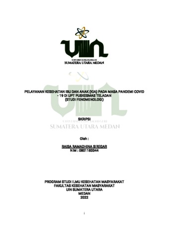 Siregar, Raisa Ramadhina (2022) Pelayanan Kesehatan Ibu dan Anak (KIA) Pada Masa Pandemi Covid-19 diUPT Puskesmas Teladan (Studi Fenomenologi). Skripsi thesis, Universitas Islam Negeri Sumatera Utara.