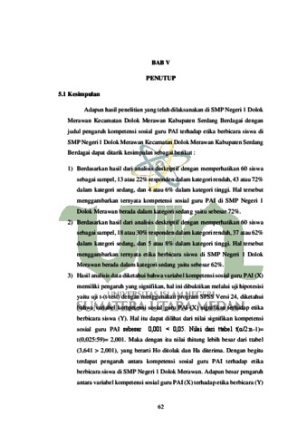 Pengaruh Kompetensi Sosial Guru Pendidikan Agama Islam Terhadap Etika Berbicara Siswa Di Smp Negeri 1 Dolok Merawan Kecamatan Dolok Merawan Kabupaten Serdang Berdagai