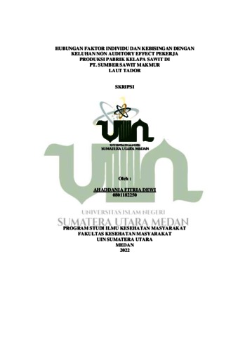 Dewi, Ahaddania Fitria (2022) Hubungan Faktor Individu dan Kebisingan dengan Keluhan Non Auditory Effect Pekerja Produksi Pabrik Kelapa Sawit PT. Sumber Sawit Makmur, Laut Tador. Skripsi thesis, Universitas Islam Negeri Sumatera Utara.
