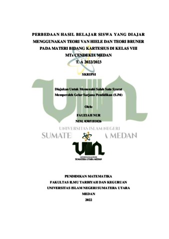 Nur, Fauziah (2022) Perbedaan Hasil Belajar Siswa Menggunakan Teori Van Hiele Dan Teori Bruner Pada Materi Bidang Kartesius di MTs Cendekia Medan T.A 2022/2023. Skripsi thesis, Universitas Islam Negeri Sumatera Utara.