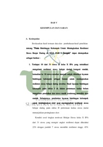 Penelitian ini dilaksanakan berdasarkan latar belakang yang ada di MAS PAB 1 Sampali yang menunjukkan terdapat siswa yang tingkat resiliensi siswa belajar daring rendah. Melalui layanan bimbingan kelompok diharapkan resiliensi siswa belajar dapat ditingkatkan. Tujuan dari penelitian ini adalah untuk mengetahui bagaimana resiliensi siswa belajar daring sebelum mendapatkan layanan bimbingan kelompok, untuk megetahui bagaimana resiliensi siswa belajar setelah mendapat layanan bimbingan kelompok, dan untuk mengetahui peran bimbingan kelompok dalam meningkatkan resiliensi siswa belajar daring. Skripsi ini menggunakan pendekatan kualitatif dengan jenis Penelitian Tindakan Bimbingan dan Konseling (PTBK) dengan menggunakan dua siklus. Adapun alasannya menggunakan jenis penelitian ini adalah karena penulis ingin menggali secara maksimal dan mendalam tentang meningkatkan resiliensi siswa belajar daring melalui pemberian layanan bimbingan kelompok. Maka dengan demikian data yang akan dikumpulkan dalam penelitian berupa angka dan informasi mengenai resiliensi siswa belajar daring di MAS PAB 1 Sampali. Hasil dari penelitian ini dapat dilihat peningkatan resiliensi siswa belajar daring pada 7 siswa pada siklus I sudah mengalami perubahan sebesar 70%, namun belum mencapai target yang diharapkan sebesar 75- 100%. Pada siklus II sudah terjadi perubahan sebesar 90% dalam hal ini hasil dari pelaksanaan layanan bimbingan kelompok pada siklus I sudah mencapai target yang diharapkan yakni 75-100%. Hal ini menunjukkan bahwa resiliensi siswa belajar daring yang dialami siswa di kelas X IPA telah mengalami peningkatan setelah dilakukan bimbingan kelompok pada siswa. Setelah dilakukan penelitian diperoleh hasil bahwa: Peran Bimbingan Kelompok Dalam Meningkatkan Resiliensi Siswa Belajar Daring di MAS PAB 1 Sampali dapat diterima artinya layanan bimbingan kelompok dapat meningkatkan resiliensi siswa belajar daring padasiswa.