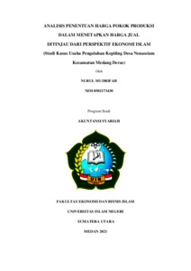 Mufridah, Nurul (2021) Analisis Penentuan Harga Pokok Produksi Dalam Menetapkan Harga Jual Ditinjau Dari Perspektif Islam (Studi Kasus Pengolahan Kepiting Desa Nenassiam Kecamatan Medang Deras). Skripsi thesis, Universitas islam negeri Sumatera Utara Medan.