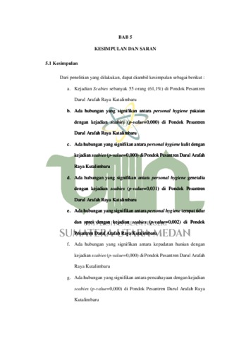 Hubungan Personal Hygiene dan Sanitasi Lingkungan Dengan Kejadian Scabies di Pondok Pesantren Darul Arafah Raya Kutalimbaru.
